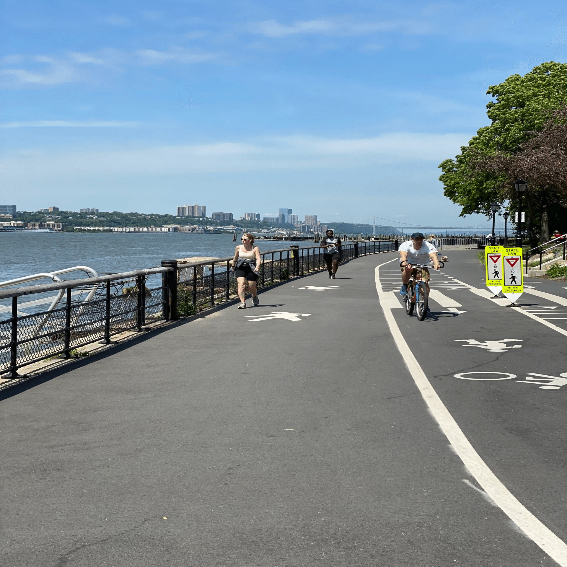 幸い、マンハッタンのハドソンリバー沿いには自動車侵入不可のグリーンウェイが整備されていますし、セントラルパークも通勤時間帯は一般自動車の乗り入れが禁止されているので「自動車がない環境」を実現できます。