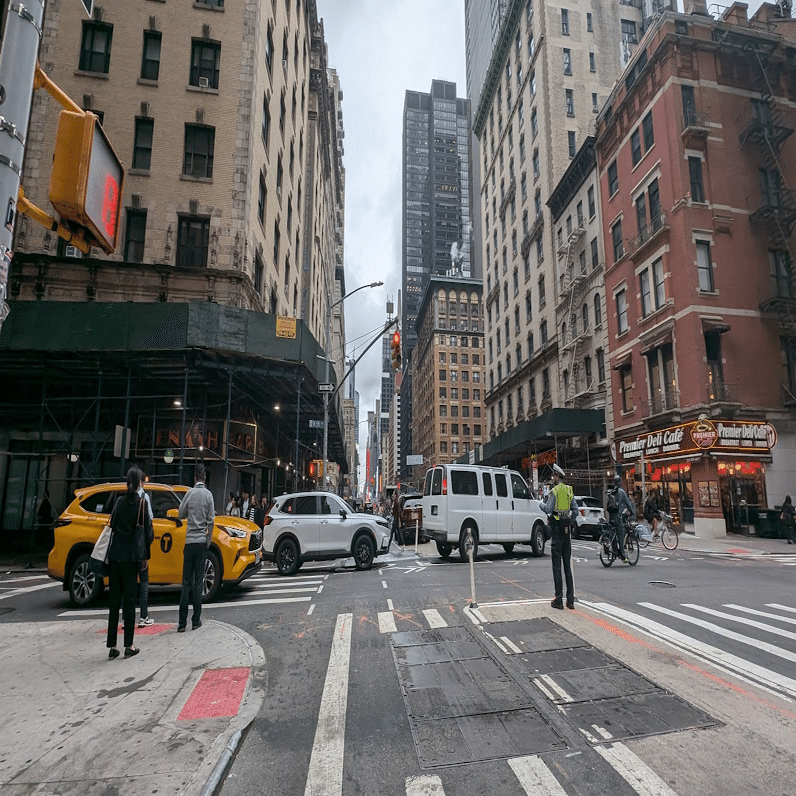 そして52丁目で青信号を渡ろうとしたところ、すごいスピードで左折してきた車が目の前に…。