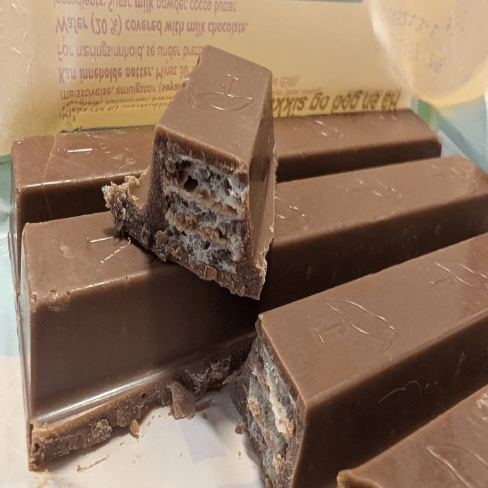 なんかチョコレートはアメリカのキットカット※よりもヨーロッパっぽいというか、キンダーやミルカのミルクチョコレートの味に似てます(※日本のキットカットはチョコレートの味がアメリカと違います)。